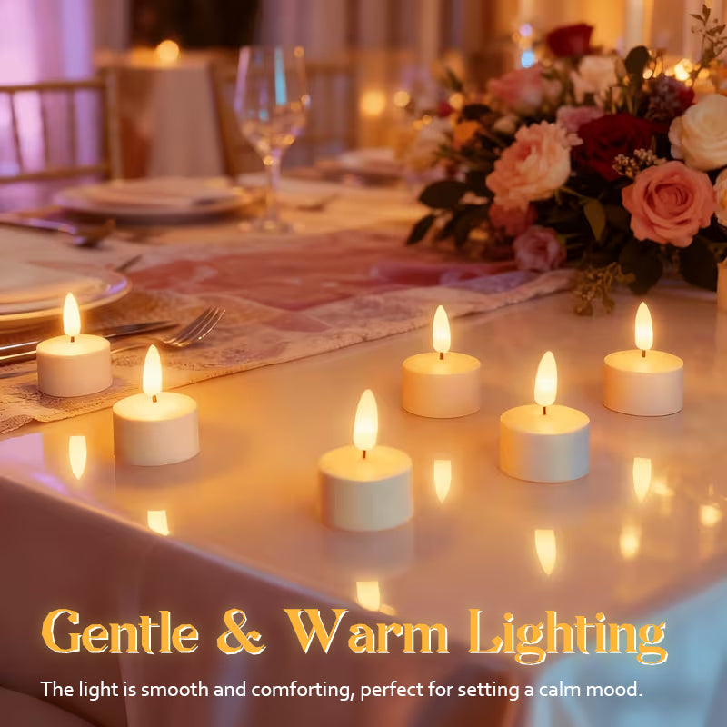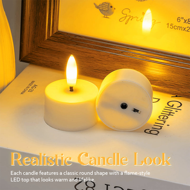 Varje ljus har en klassisk rund form med en LED-topp i form av en lĂ„ga som ser varm och verklighetstrogen ut. Det mjuka skenet skapar en mysig, romantisk kĂ€nsla utan att anvĂ€nda riktig eld âšđ.